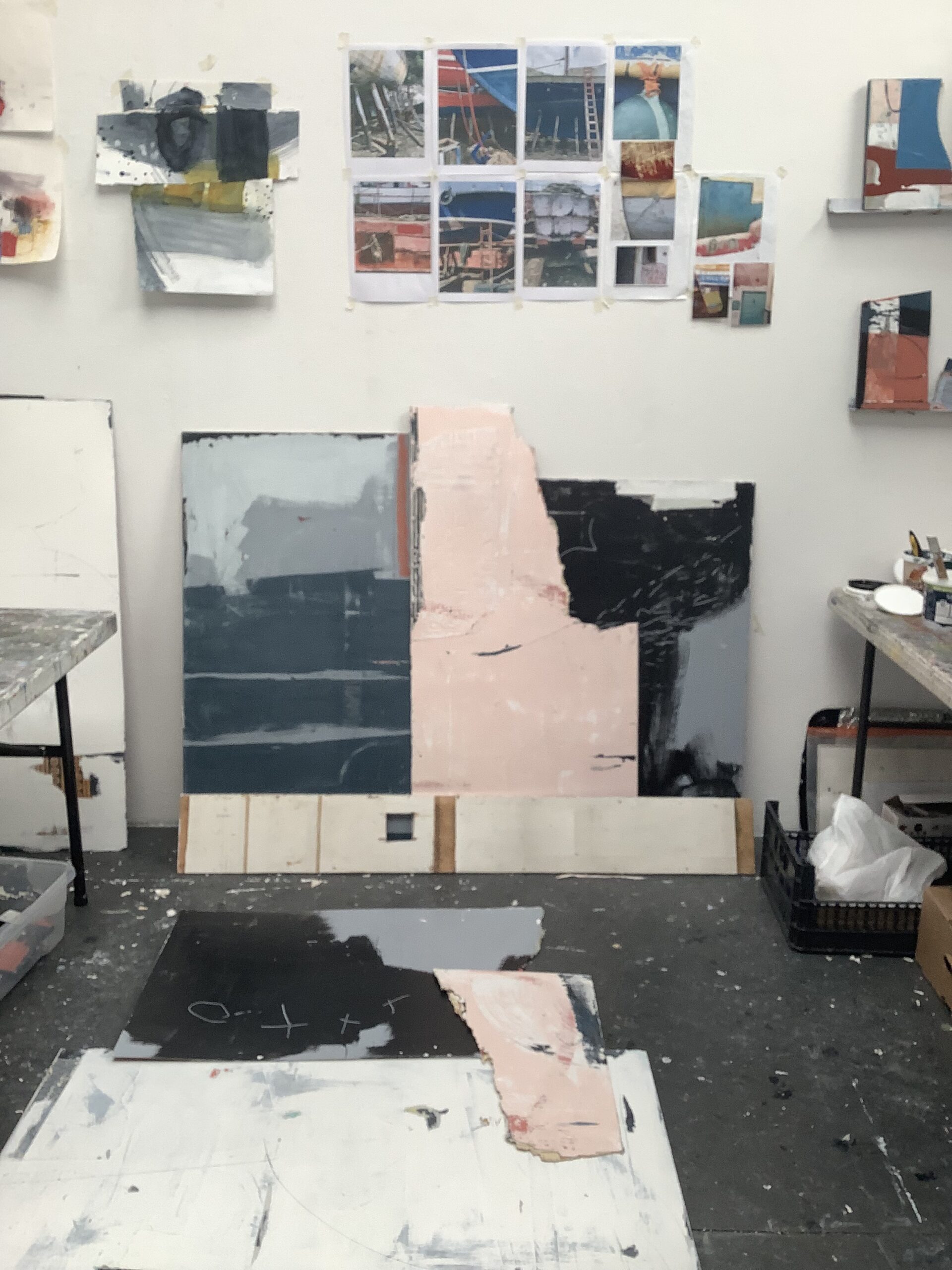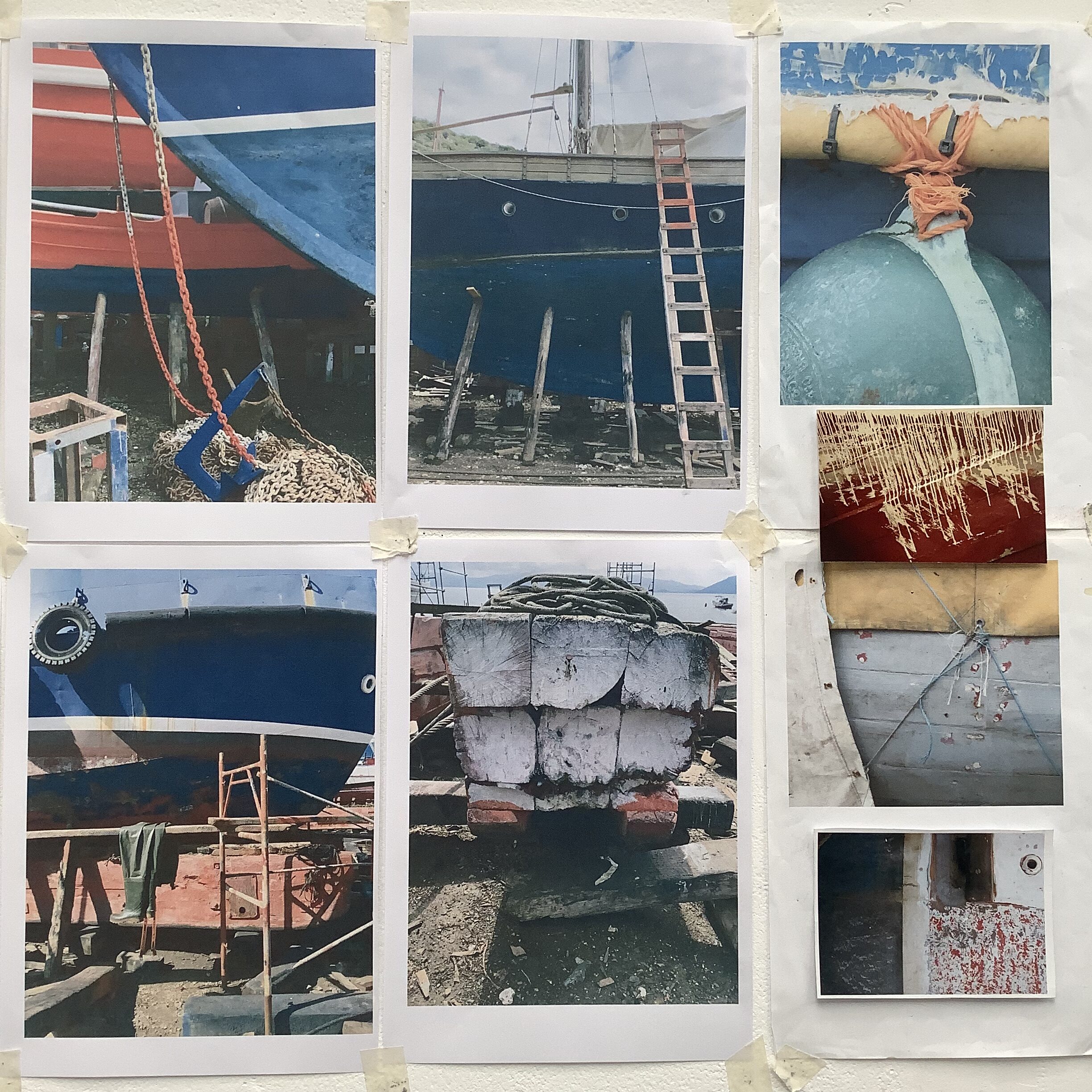 The pictures below should give you a taster of my week. Firstly setting up my space, hanging up images that are important to my series including photographs and my small cardboard studies. I also took time to visit Shoreham and had a fantastic poke around the boatyard on a grey September day – in my element!