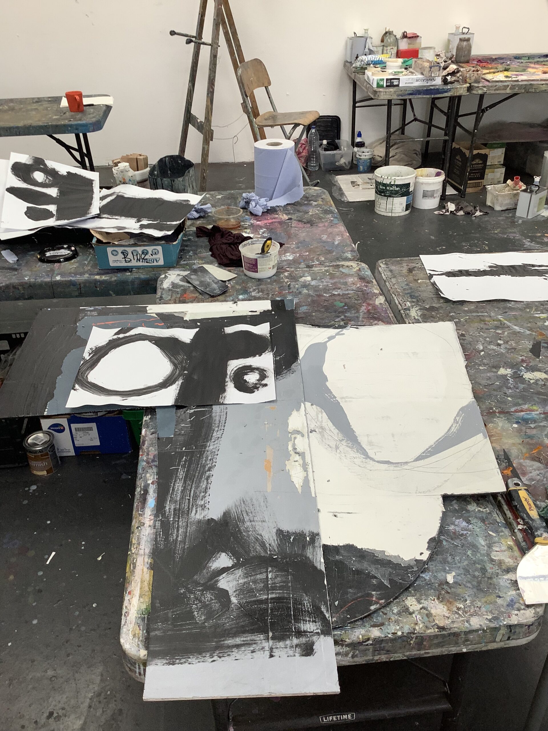 In September 2022 I participated in a two-week artist residency at Emily Ball’s Seawhite studio near Brighton.Working in a massive studio with six more artists was a real treat for me. Many times in the past I have discussed with Emily how frustrating it is not to be able to find large studio space in my area; this is a great solution.