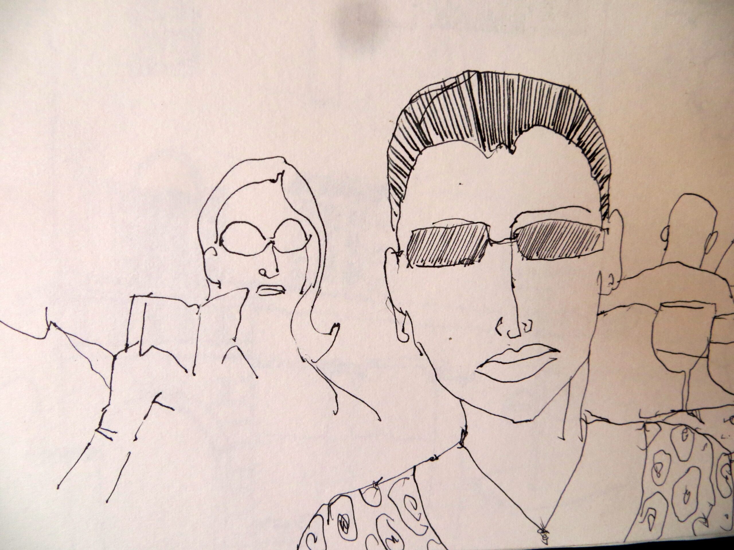 I position myself, often perched or leaning, and my ‘models’ enter my line of vision, they enter my drawing and they then have the choice to move on if they do not wish to be included. I love it when someone sits opposite me and stays quite happily – rarely do they ask to see the drawing as they often move on to catch their train. More often that not my models are so focused on their phone, game, music they pay very little attention to anyone else. Am I the only one still interested in people watching and listening to snippets of conversation?