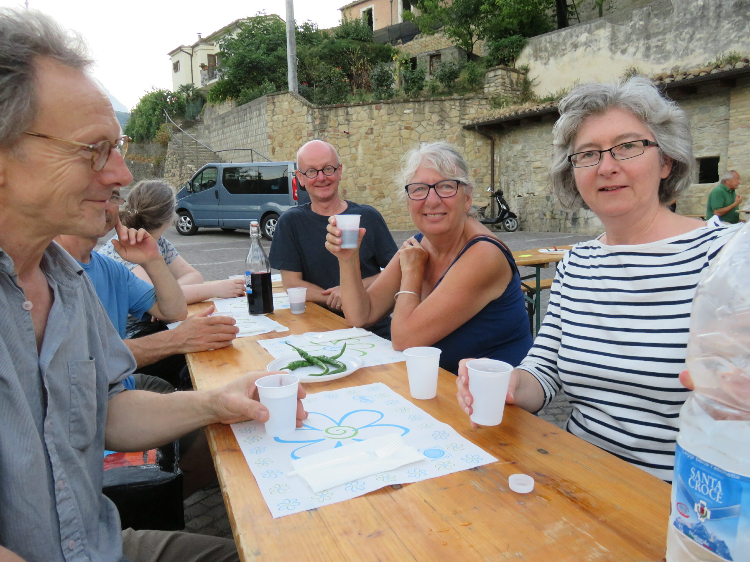 Last night the Mayor invited us to a big communal meal in the square; complete with a band in long wigs, locals dancing and us ‘Artistas’ presented on stage – waving frantically – due to the total lack of Italian language (and a lot of wine)