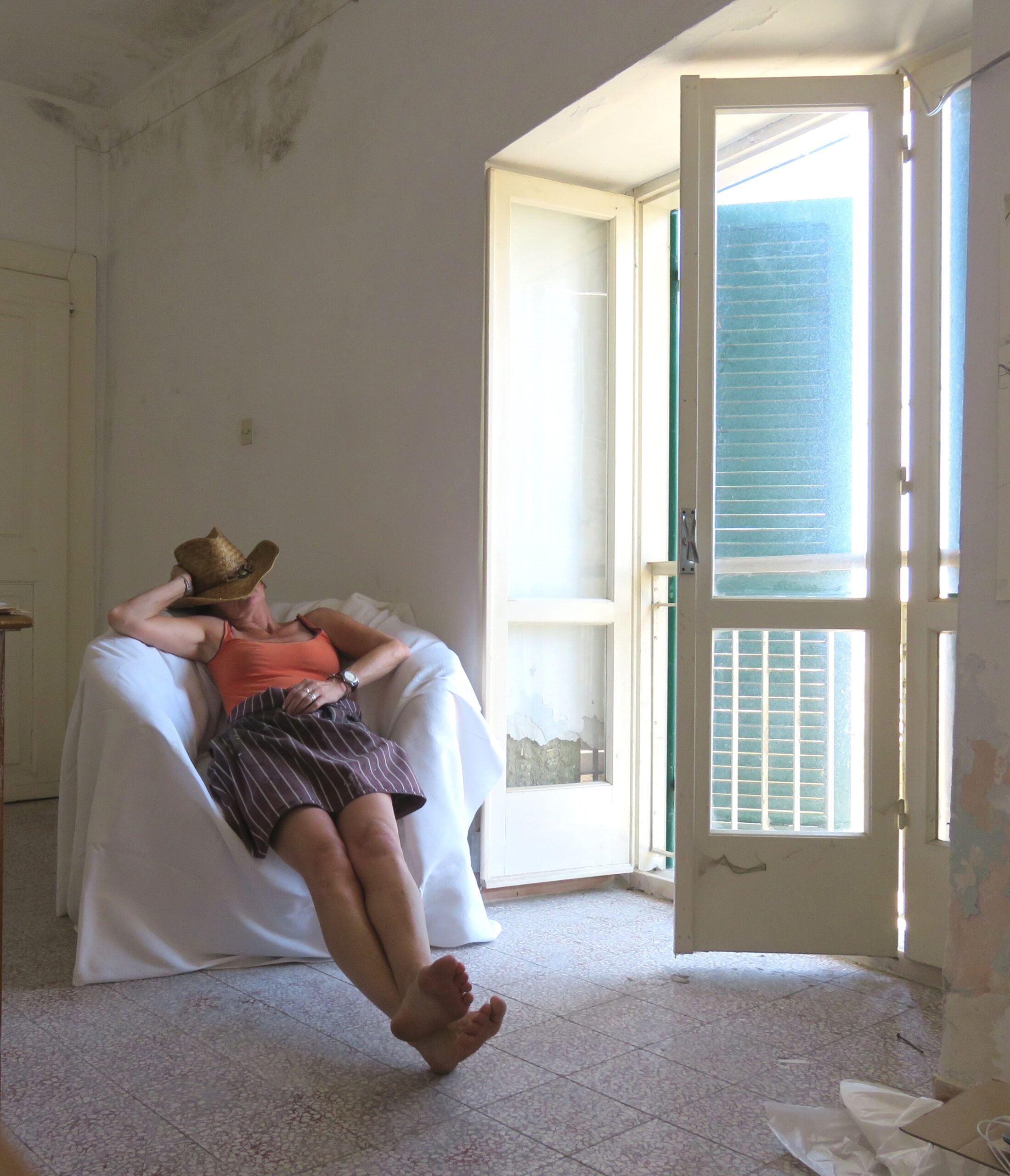 ‘Karen, come to the diary room. Why the sudden domesticity?’ Richard arrives into all this madness tonight I reply, I am slightly concerned about how he will acclimatise to the heat and all these smiley happy Italians who run around doing everything tomorrow. Will he like lemon liquors for breakfast and deep fried pizza at midnight? Will he mind sleeping on the common room floor in our home for wayward, grubby artists and being woken by flies, baking heat and barking dogs? I console myself with the fact that he has his saxaphone and a tiny car, he could always sit in it with the aircon on!!