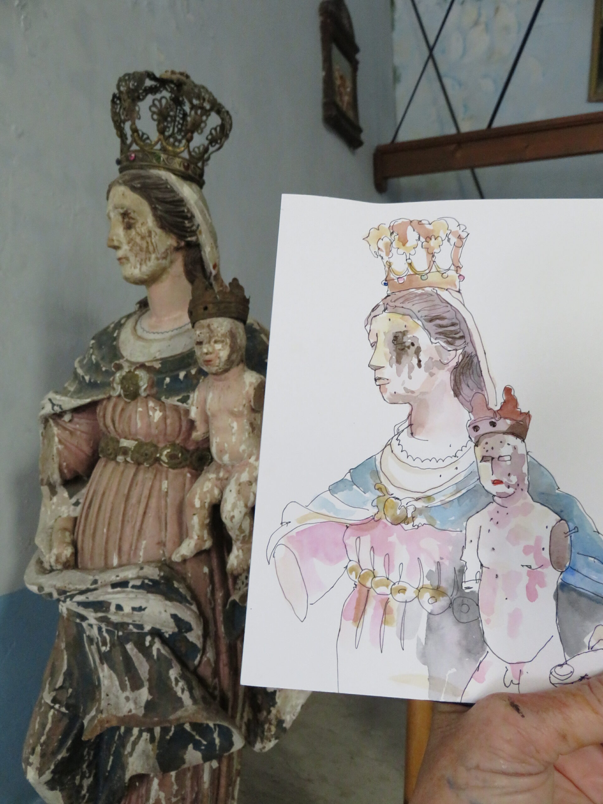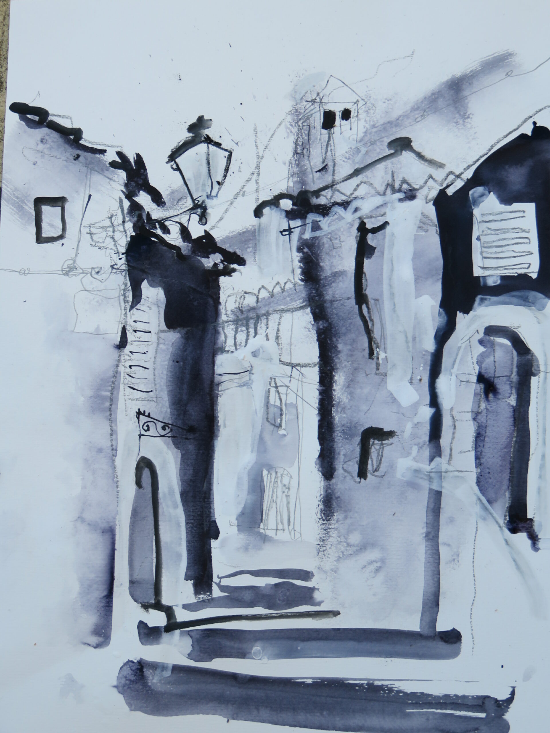 Two days in, things are falling into place …we are all in seperate abandoned houses along a fiesta/food trail. We are being jolly British and accepting that there will never be electricity in the studio ( to work the fan that torments me ) that we will always have to walk up and down that damn hill dripping with sweat, that the breeze will always just miss my studio door….