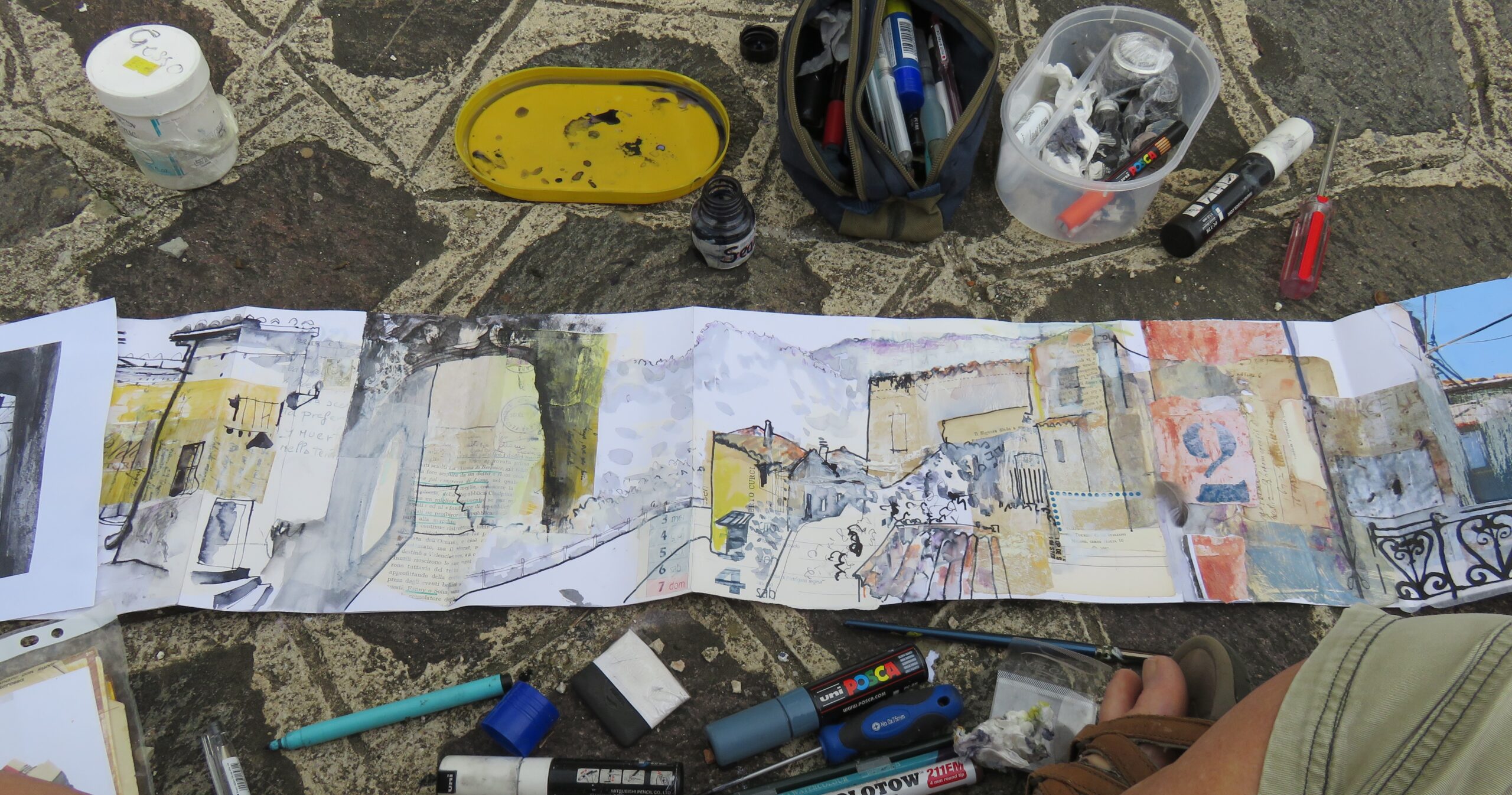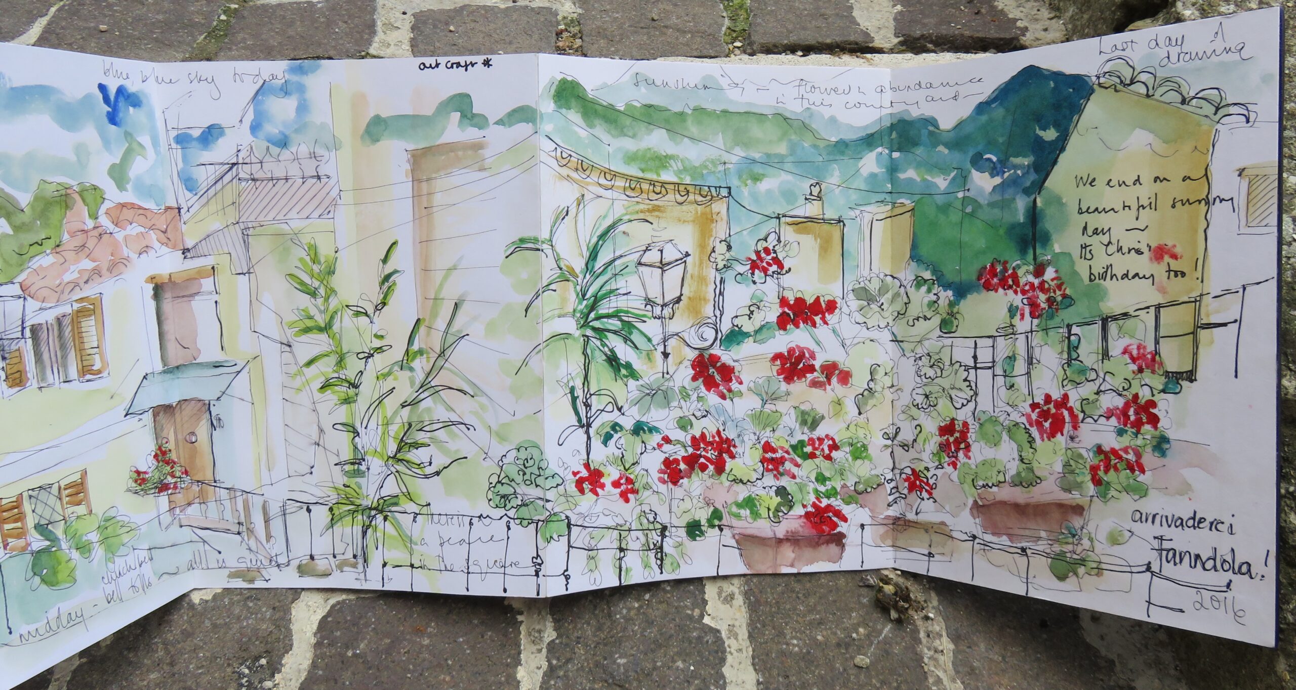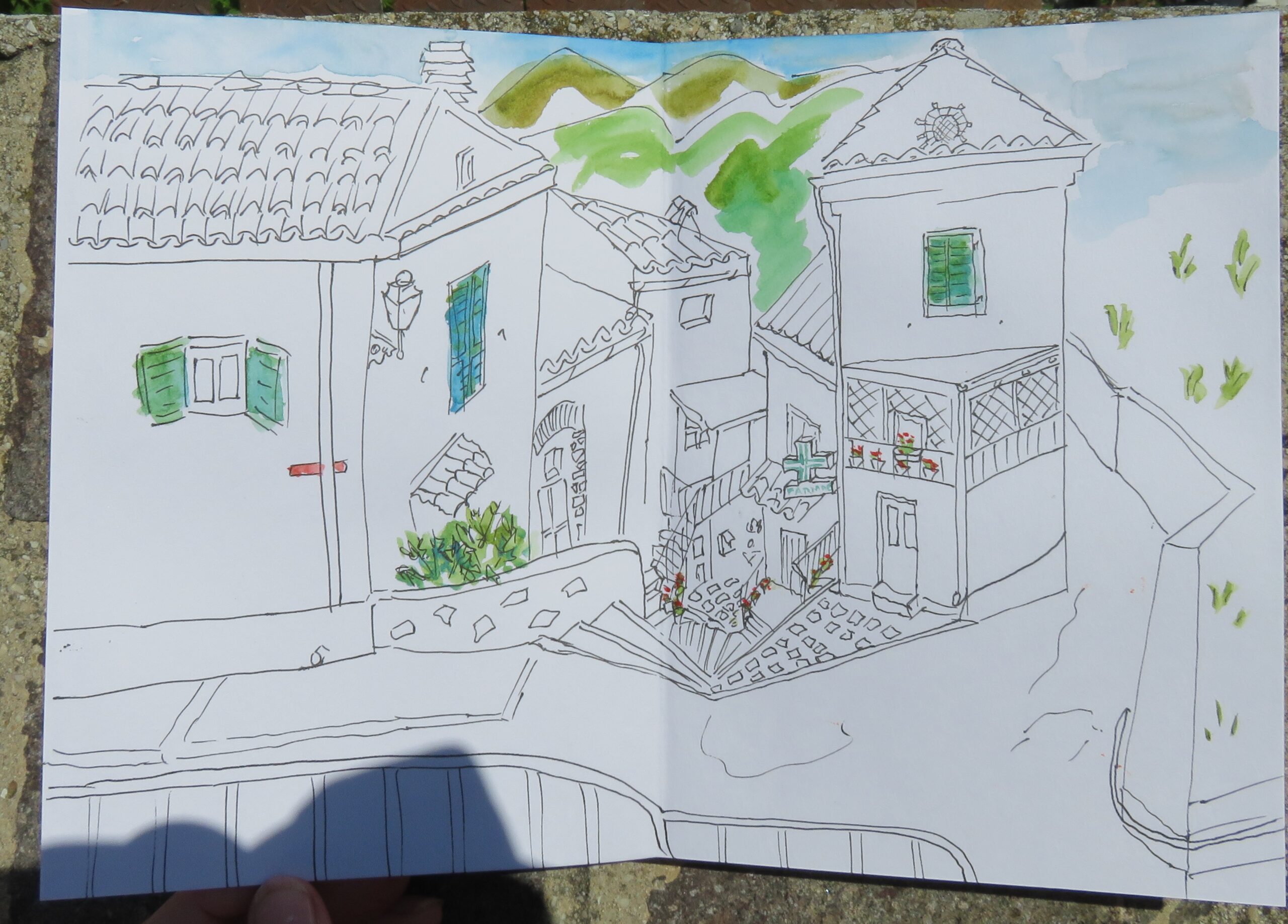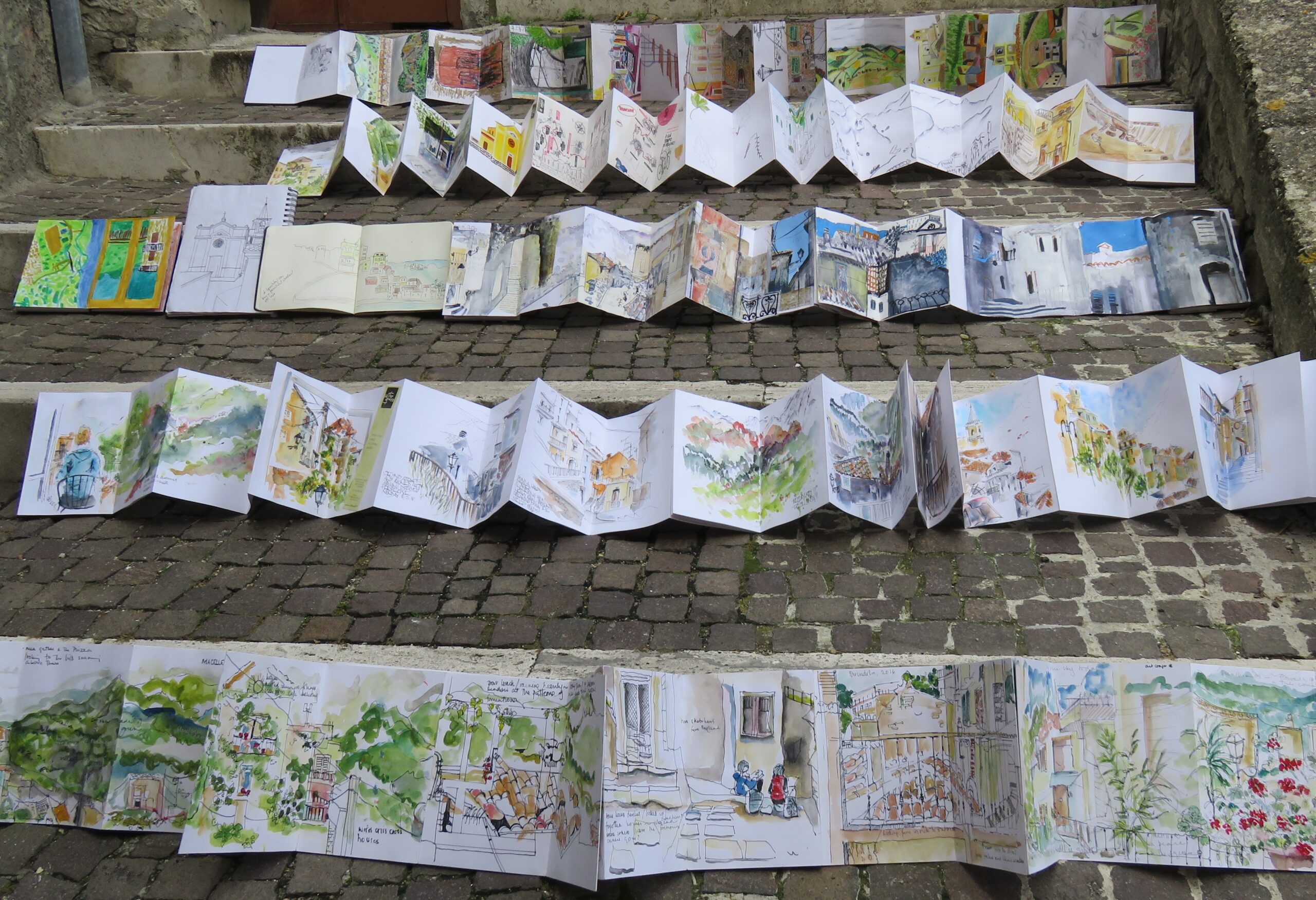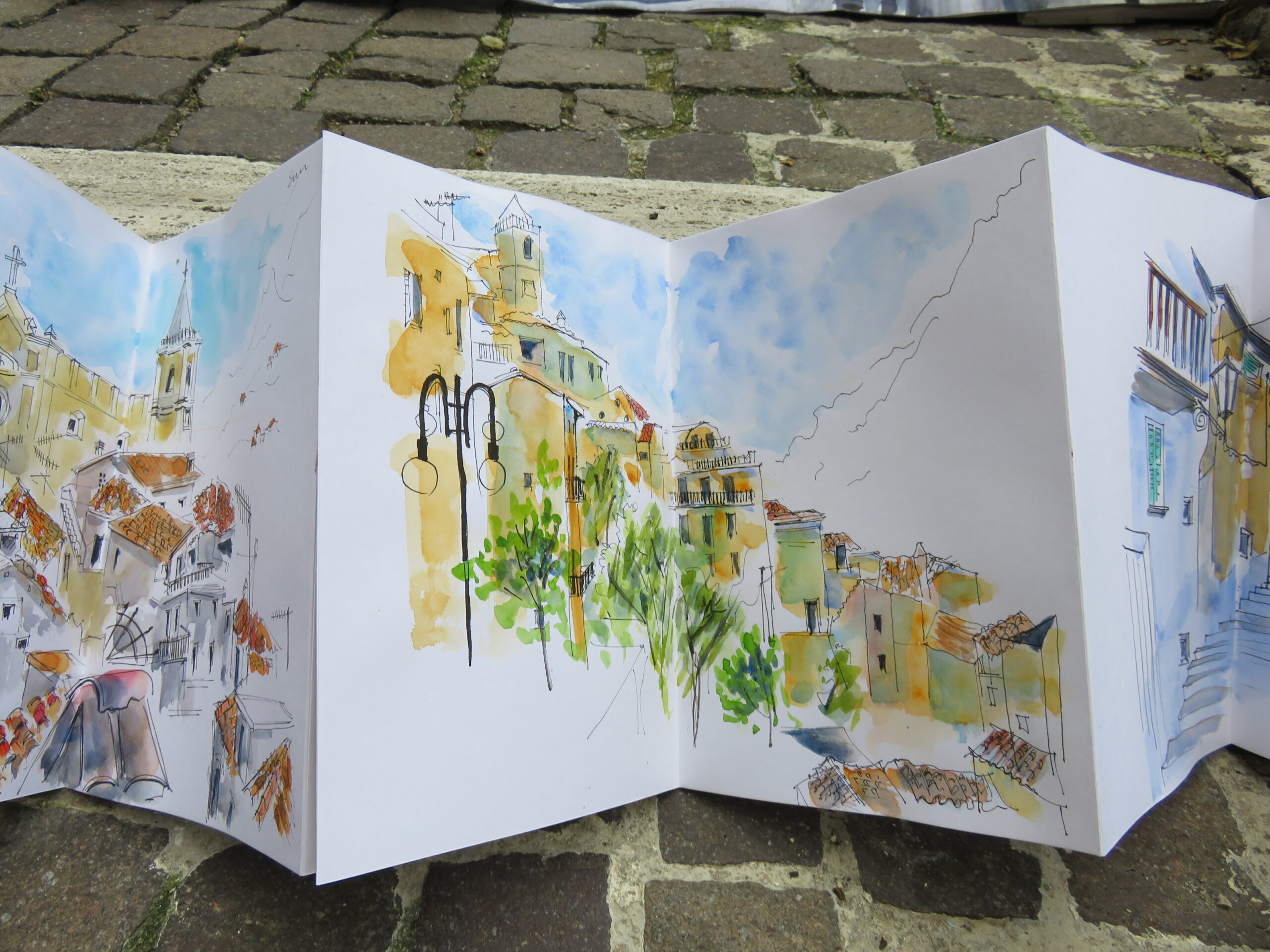 Most sketched in concertina sketchbooks which really lend themselves to the winding streets and mountain panorama views. You can see some beautiful pages here.