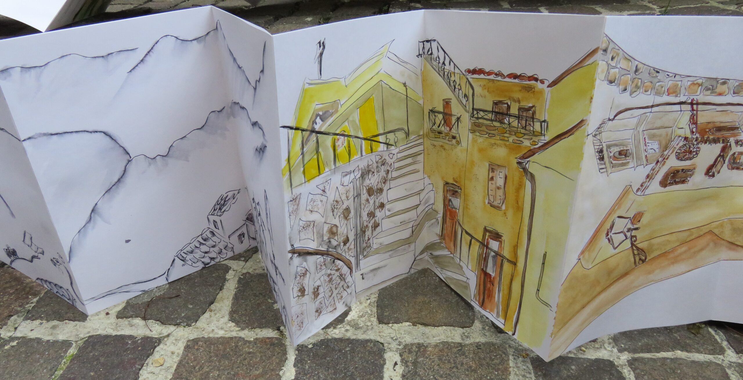Concertina sketchbook from a two week artist residency in Farindola Italy. See the full book here https://youtu.be/vv47i3FXiaM